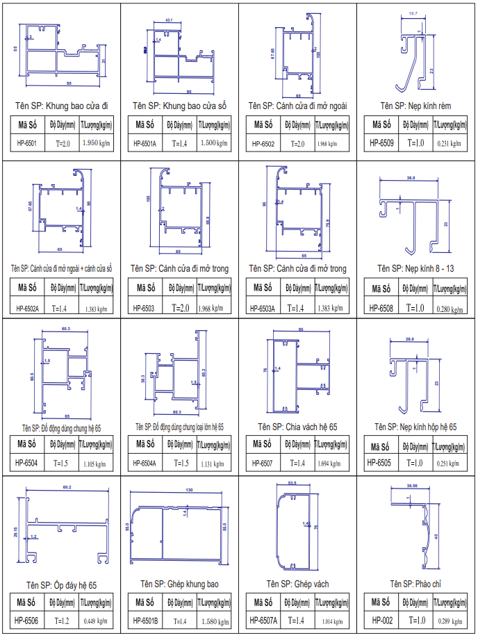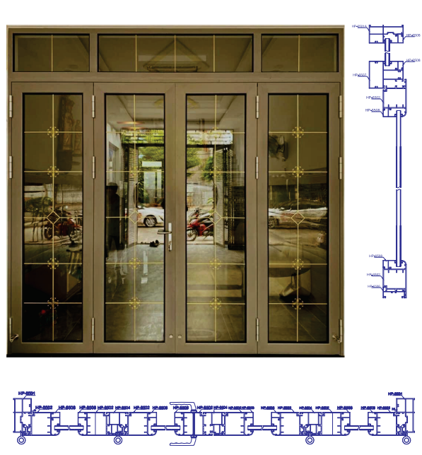 MẶT CẮT CỬA ĐI VÀ CỬA SỔ HỆ 65