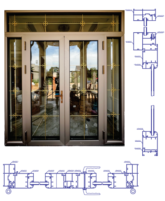 Hệ cửa được cấu tạo nên từ những thanh nhôm bản rộng. Được ghép với nhau các ke góc đặc chủng rất cứng cáp.