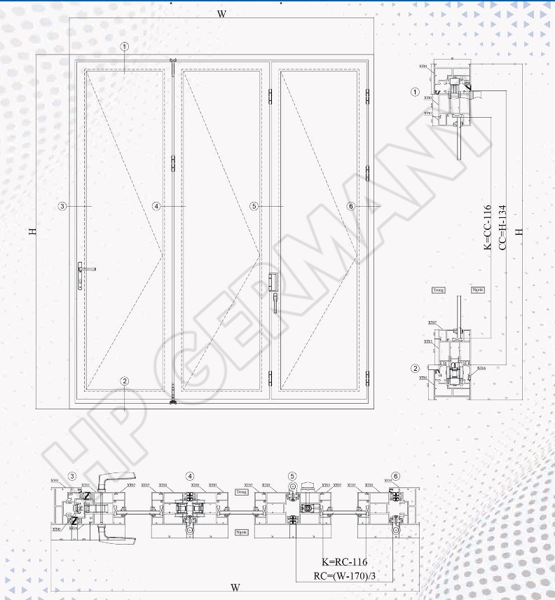 CỬA ĐI XẾP TRƯỢT HỆ 80 nhôm GERMANYHP