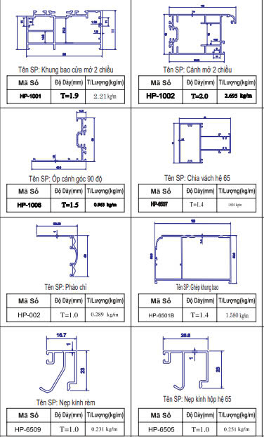 Mặt cắt cửa nhôm 2 chiều