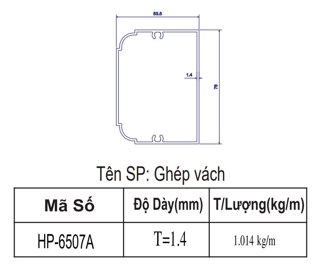 | 6 | HP-6507A | Ghép Vách | 6m | 76*53.5 | 1.40 | 827,424 | 991,692 | 1,022,112 |
