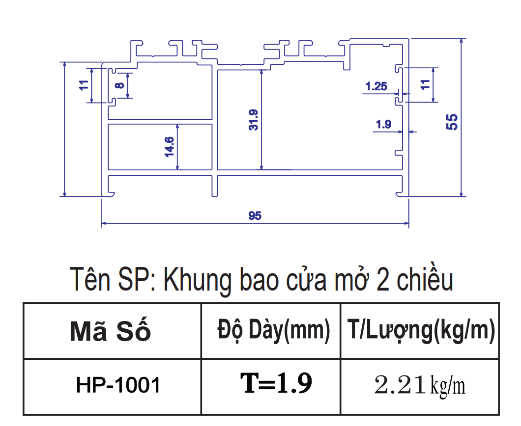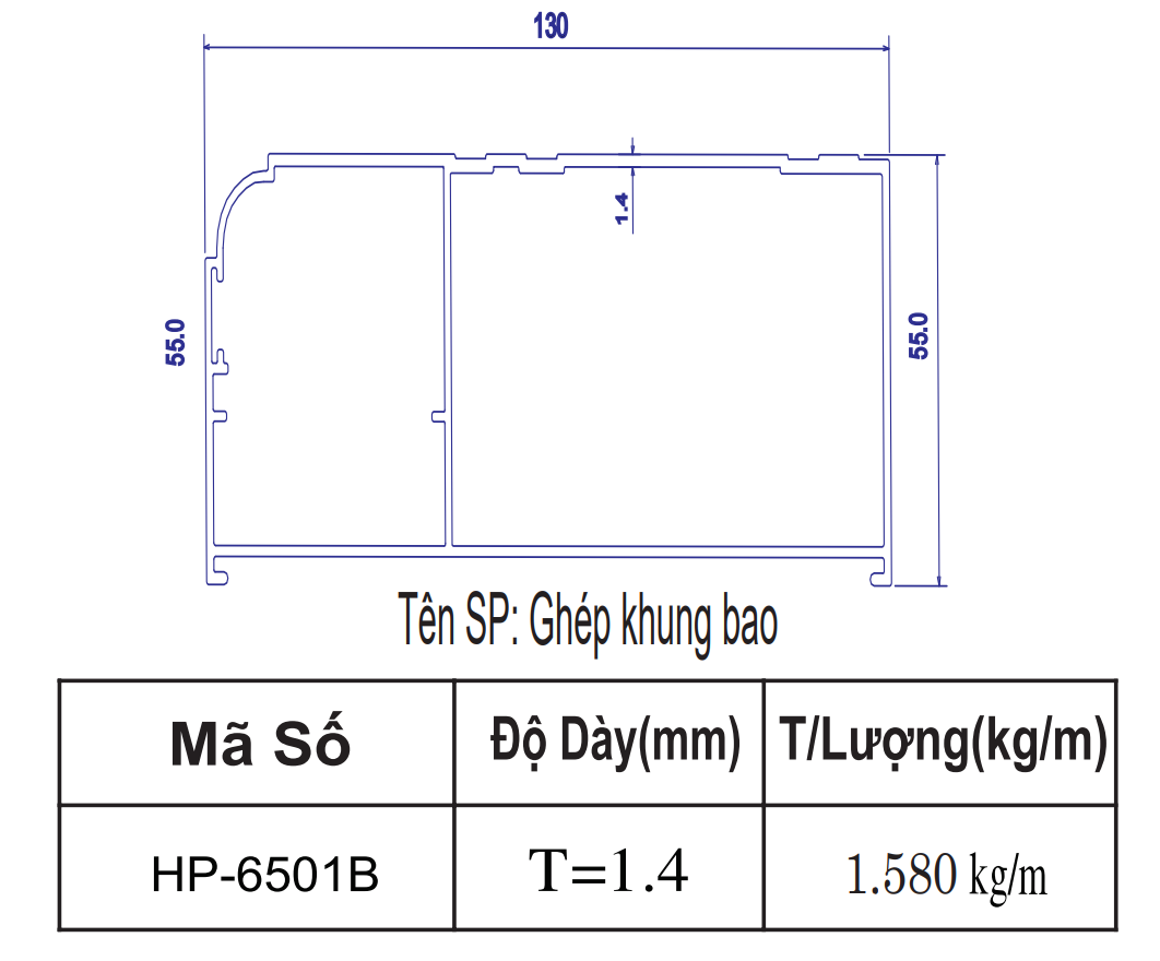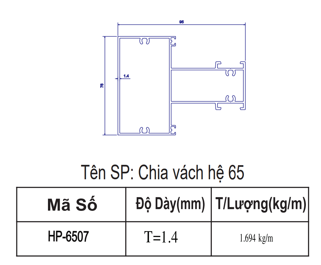 | 5 | HP-6507 | Chia vách hệ 65 | 6m | 76*95 | 1.40 | 1,382,304 | 1,656,732 | 1,707,552 |