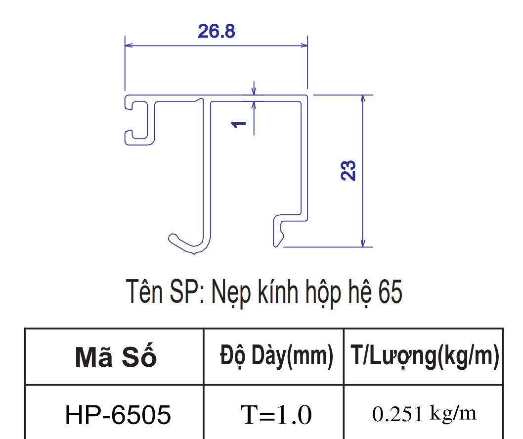 | 11 | Nẹp kính hộp hệ 65 | Nẹp kính hộp hệ 65 | 26.8*23 | 1.00 | 213,282 | 255,625 | 263,466 | |