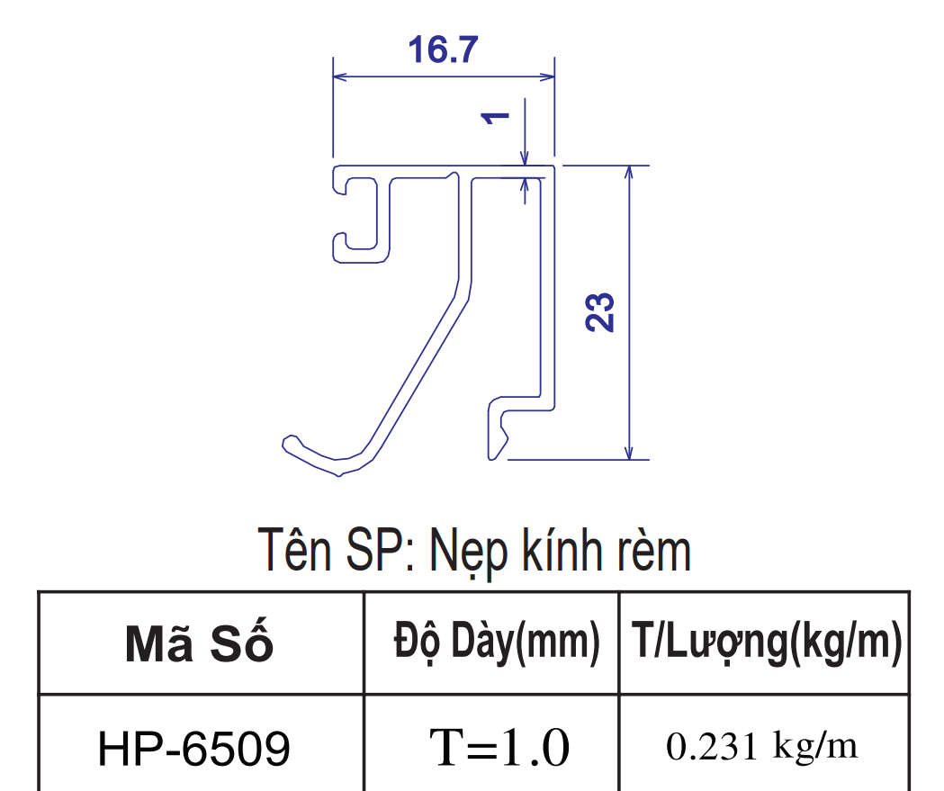 | 10 | Nẹp kính rem | Nẹp kính rèm | 6m | 23*16.7 | 1.00 | 188,496 | 225,918 | 232,848 |