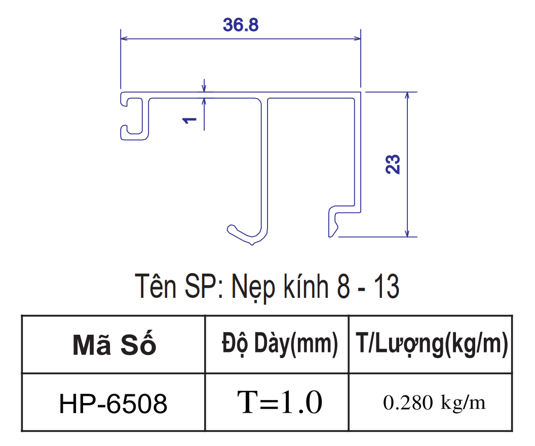 | 9 | Nẹp kính 8-13 | Nẹp kính 8-13 | 6m | 36.8*23 | 1.00 | 236,980 | 284,028 | 292,740 |