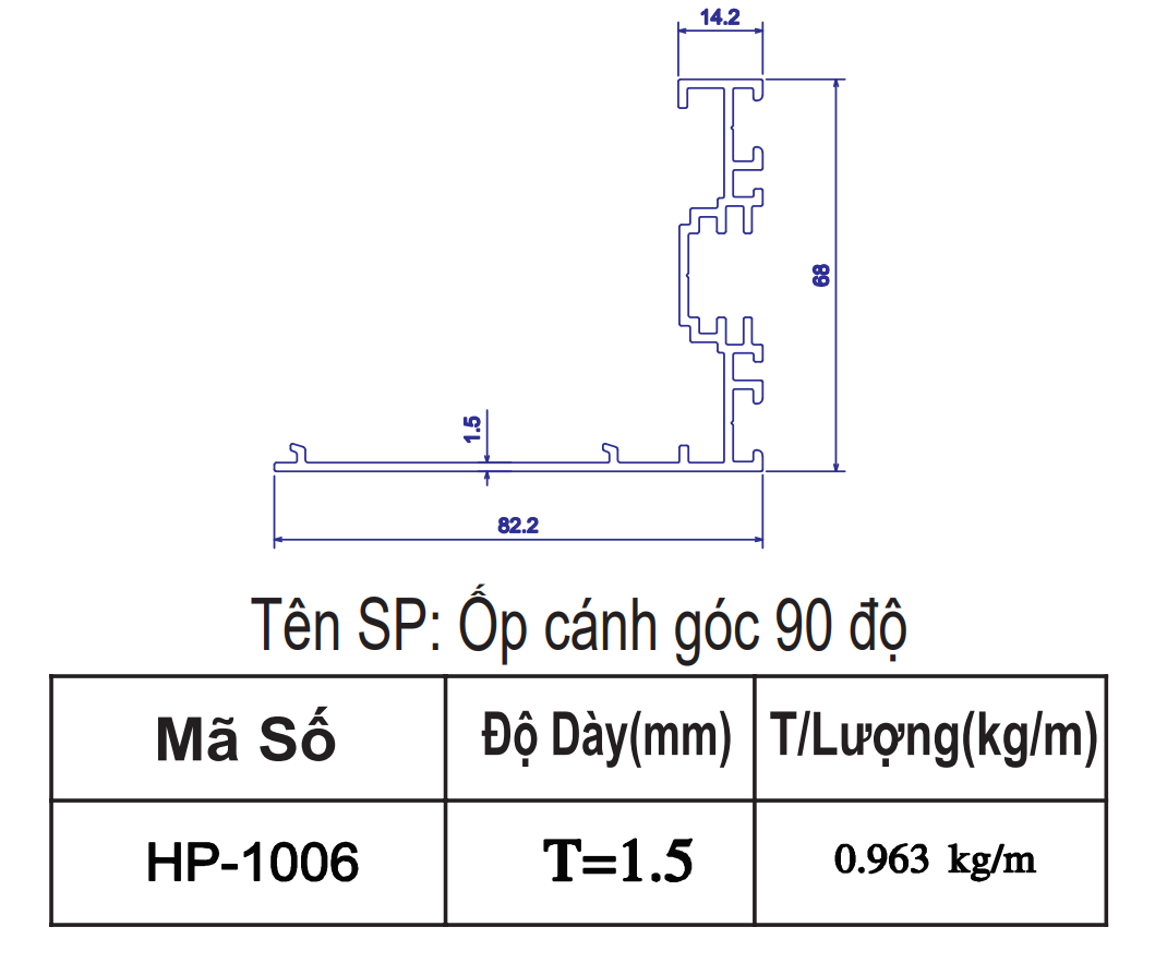 | 4 | HP-1006 | Ốp cánh góc 90 độ | 6m | 82.2*68 | 1.50 | 785,808 | 941,814 | 970,704 |