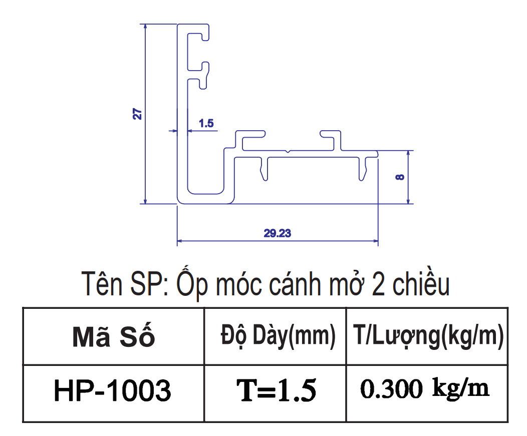 | 3 | HP-1003 | Ốp móc cánh mở hai chiều | 6m | 29.23*27 | 1.50 | 244,800 | 293,400 | 302,400 |