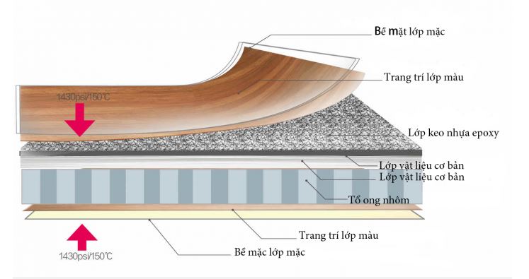 • Giai đoạn 4: Nhà máy sản xuất sẽ sử dụng máy ép nóng để chồng ép chúng lên nhau để tạo sự kết dính và tạo nên các đơn vị tổ ong riêng biệt