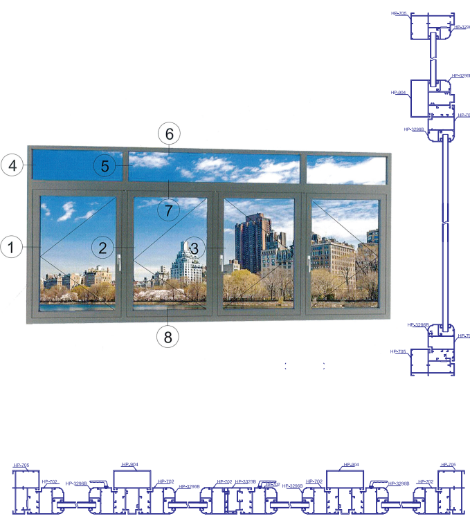 Cũng như các loại cửa khác, cửa sổ mở quay nhôm Germany HP có cấu tạo như sau: